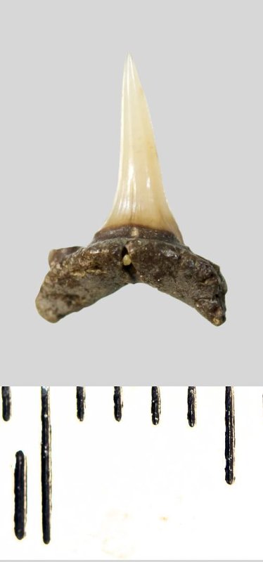 Зуб. Акула. Eostriatolamia subulata (Agassiz, 1843). Классификация: Хордовые Chordata, Позвоночные Vertebrata, Хрящевые рыбы Chondrichthyes, Пластиножаберные Elasmobranchii, Акулы Selachii, Ламнообразные Lamniformes