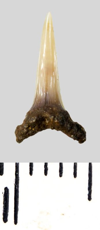 Зуб. Акула. Eostriatolamia subulata (Agassiz, 1843). Классификация: Хордовые Chordata, Позвоночные Vertebrata, Хрящевые рыбы Chondrichthyes, Пластиножаберные Elasmobranchii, Акулы Selachii, Ламнообразные Lamniformes