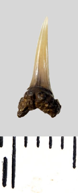 Зуб. Акула. Eostriatolamia subulata (Agassiz, 1843). Классификация: Хордовые Chordata, Позвоночные Vertebrata, Хрящевые рыбы Chondrichthyes, Пластиножаберные Elasmobranchii, Акулы Selachii, Ламнообразные Lamniformes