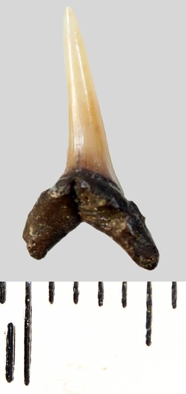 Зуб. Акула. Eostriatolamia subulata (Agassiz, 1843). Классификация: Хордовые Chordata, Позвоночные Vertebrata, Хрящевые рыбы Chondrichthyes, Пластиножаберные Elasmobranchii, Акулы Selachii, Ламнообразные Lamniformes