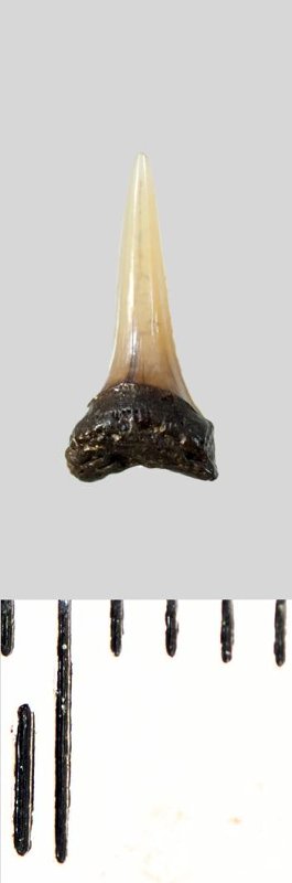 Зуб. Акула. Eostriatolamia subulata (Agassiz, 1843). Классификация: Хордовые Chordata, Позвоночные Vertebrata, Хрящевые рыбы Chondrichthyes, Пластиножаберные Elasmobranchii, Акулы Selachii, Ламнообразные Lamniformes