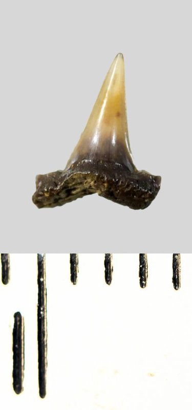 Зуб. Акула. Eostriatolamia subulata (Agassiz, 1843). Классификация: Хордовые Chordata, Позвоночные Vertebrata, Хрящевые рыбы Chondrichthyes, Пластиножаберные Elasmobranchii, Акулы Selachii, Ламнообразные Lamniformes