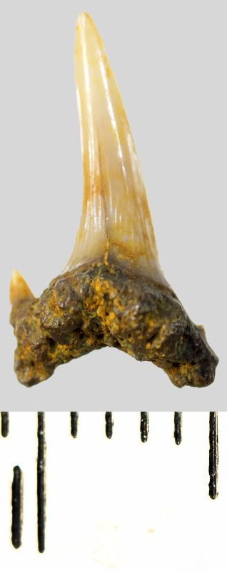 Зуб. Акула. Eostriatolamia subulata (Agassiz, 1843). Классификация: Хордовые Chordata, Позвоночные Vertebrata, Хрящевые рыбы Chondrichthyes, Пластиножаберные Elasmobranchii, Акулы Selachii, Ламнообразные Lamniformes