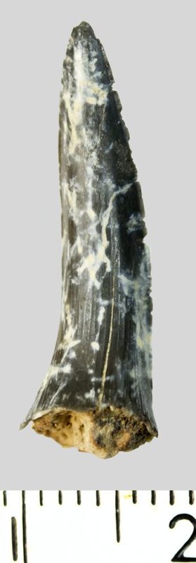 Зуб (фрагмент). Акула. Striatolamia macrota (Agassiz, 1843). Классификация: Хордовые Chordata, Позвоночные Vertebrata, Хрящевые рыбы Chondrichthyes, Пластиножаберные Elasmobranchii