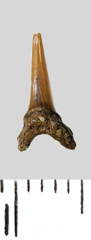Зуб. Акула. Eostriatolamia subulata (Agassiz, 1843). Классификация: Хордовые Chordata, Позвоночные Vertebrata, Хрящевые рыбы Chondrichthyes, Пластиножаберные Elasmobranchii, Акулы Selachii, Ламнообразные Lamniformes