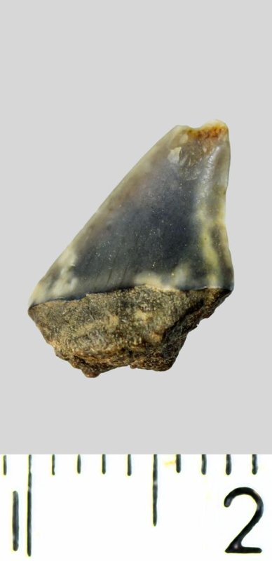 Зуб (фрагмент). Акула. Otodus sp. Классификация: Хордовые Chordata, Позвоночные Vertebrata, Хрящевые рыбы Chondrichthyes, Пластиножаберные Elasmobranchii