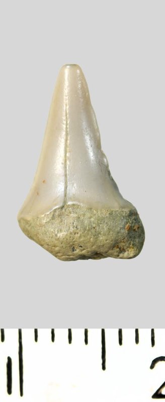 Зуб. Акула. Striatolamia striata (Winkler, 1874). Классификация: Хордовые Chordata, Позвоночные Vertebrata, Хрящевые рыбы Chondrichthyes, Пластиножаберные Elasmobranchii