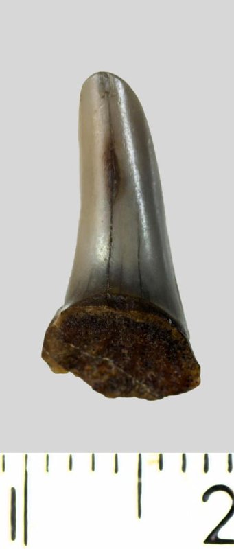 Зуб (фрагмент). Акула. Hypotodus sp. Классификация: Хордовые Chordata, Позвоночные Vertebrata, Хрящевые рыбы Chondrichthyes, Пластиножаберные Elasmobranchii