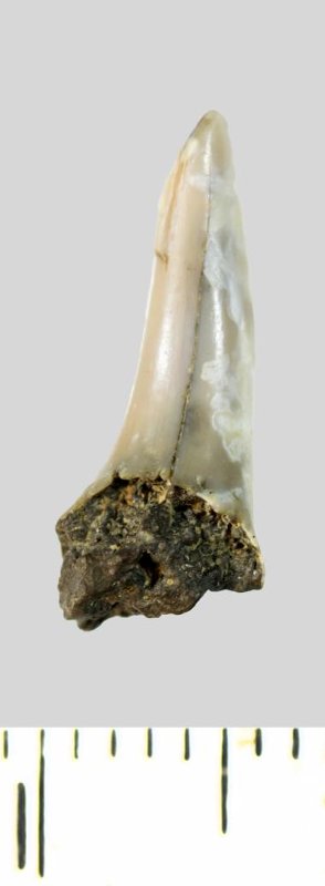 Зуб (фрагмент). Акула. Hypotodus sp. Классификация: Хордовые Chordata, Позвоночные Vertebrata, Хрящевые рыбы Chondrichthyes, Пластиножаберные Elasmobranchii