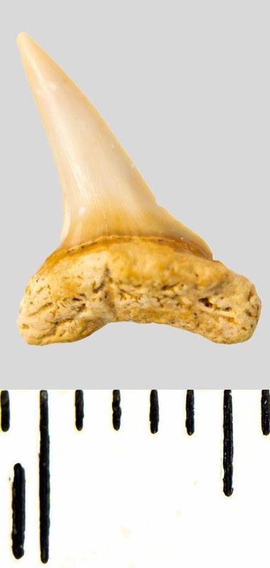 Зуб. Акула. Eostriatolamia subulata (Agassiz, 1843). Классификация: Хордовые Chordata, Позвоночные Vertebrata, Хрящевые рыбы Chondrichthyes, Пластиножаберные Elasmobranchii, Акулы Selachii, Ламнообразные Lamniformes, Песчаные акулы Odontaspididae
