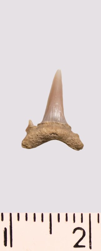 Зуб. Акула. Scapanorhynchus rapax Quaas, 1902. Классификация: Хордовые Chordata, Позвоночные Vertebrata, Хрящевые рыбы Chondrichthyes, Пластиножаберные Elasmobranchii