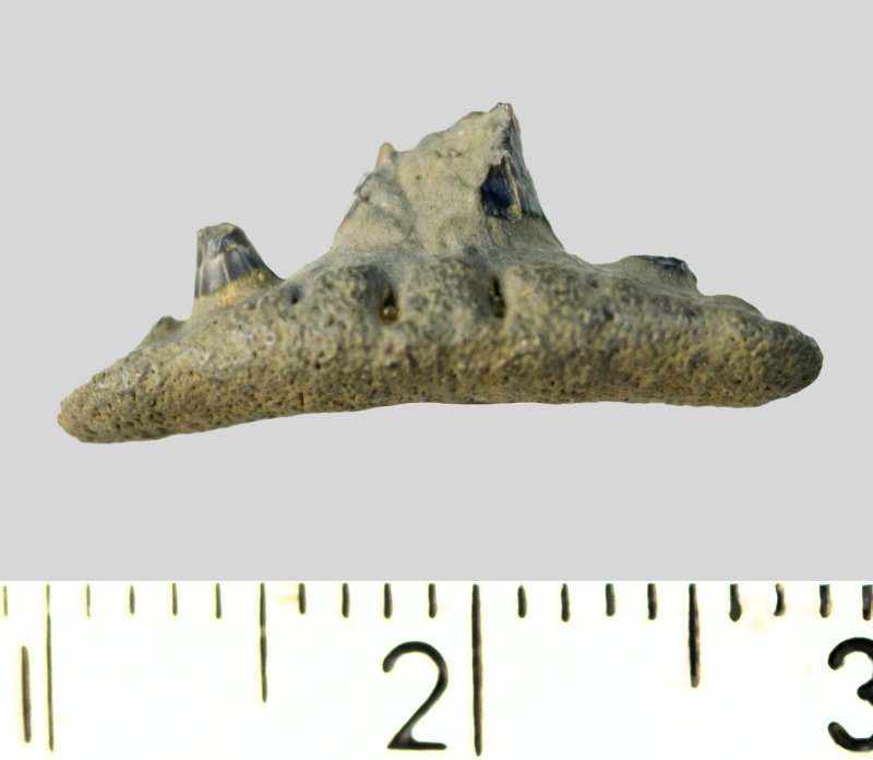 Зуб (фрагмент). Акула. Paraorthacodus sp. Классификация: Хордовые Chordata, Позвоночные Vertebrata, Хрящевые рыбы Chondrichthyes, Пластиножаберные Elasmobranchii, Акулы Selachii, Многожаберникообразные Hexanchiformes