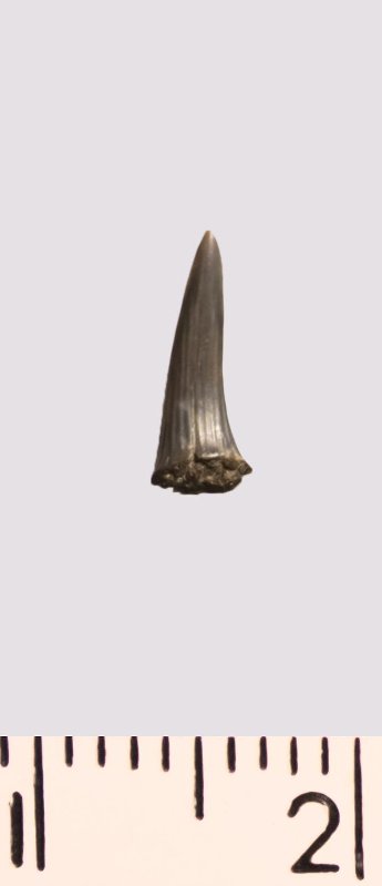 Зуб (фрагмент). Акула. Scapanorhynchus rhaphiodon Agassiz, 1843. Классификация: Хордовые Chordata, Позвоночные Vertebrata, Хрящевые рыбы Chondrichthyes, Пластиножаберные Elasmobranchii