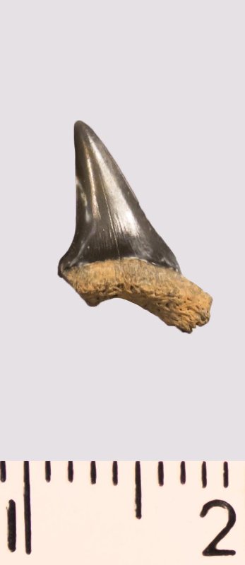 Зуб. Акула. Scapanorhynchus rhaphiodon Agassiz, 1843. Классификация: Хордовые Chordata, Позвоночные Vertebrata, Хрящевые рыбы Chondrichthyes, Пластиножаберные Elasmobranchii