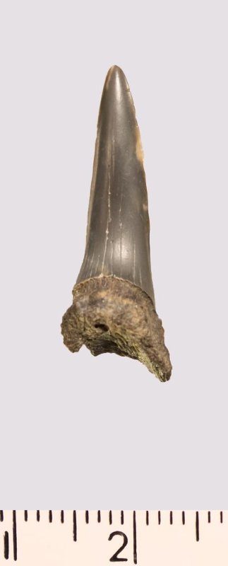 Зуб. Акула. Scapanorhynchus gigas Woodward, 1889. Классификация: Хордовые Chordata, Позвоночные Vertebrata, Хрящевые рыбы Chondrichthyes, Пластиножаберные Elasmobranchii