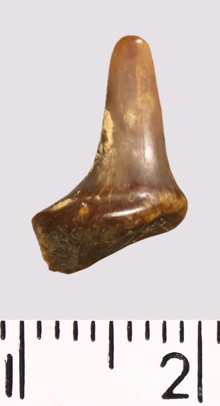 Зуб (фрагмент). Акула. Lamniformes gen. et sp. indet. Классификация: Хордовые Chordata, Позвоночные Vertebrata, Хрящевые рыбы Chondrichthyes, Пластиножаберные Elasmobranchii