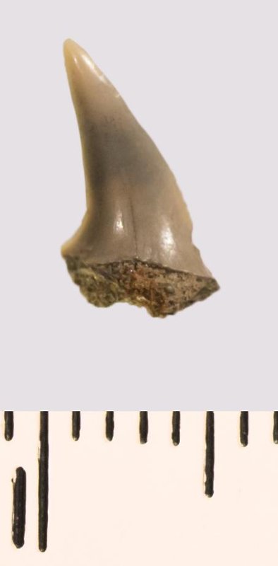 Зуб (фрагмент). Акула. Odontaspis venusta (Leriche, 1929). Классификация: Хордовые Chordata, Позвоночные Vertebrata, Хрящевые рыбы Chondrichthyes, Пластиножаберные Elasmobranchii