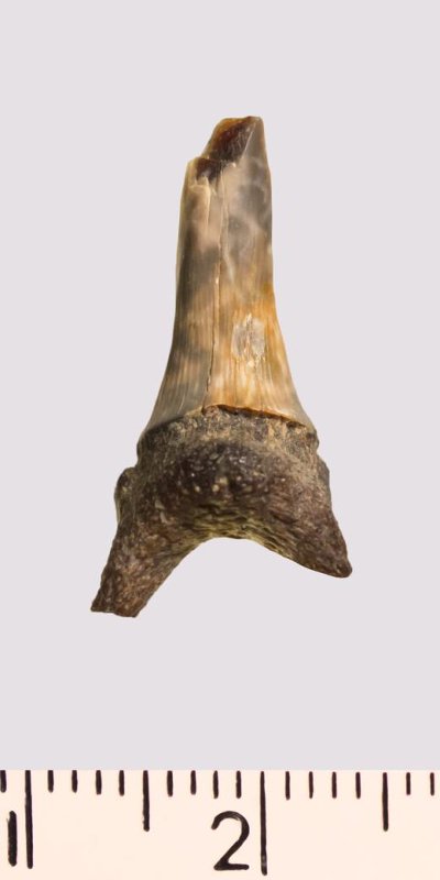 Зуб. Акула. Rhaphiodus sp. Классификация: Хордовые Chordata, Позвоночные Vertebrata, Хрящевые рыбы Chondrichthyes, Пластиножаберные Elasmobranchii
