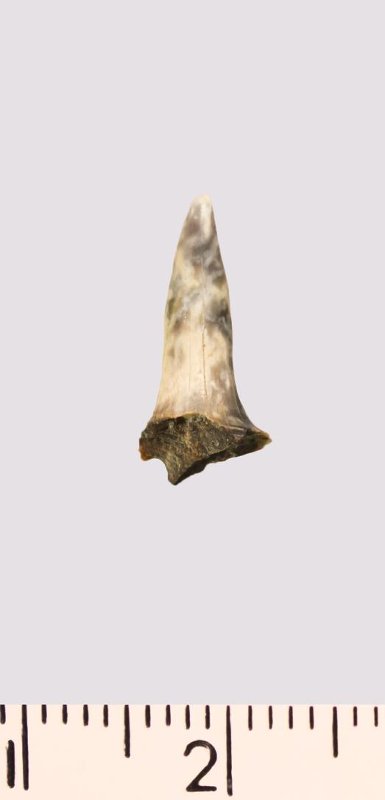 Зуб (фрагмент). Акула. Scapanorhynchus gigas Woodward, 1889. Классификация: Хордовые Chordata, Позвоночные Vertebrata, Хрящевые рыбы Chondrichthyes, Пластиножаберные Elasmobranchii