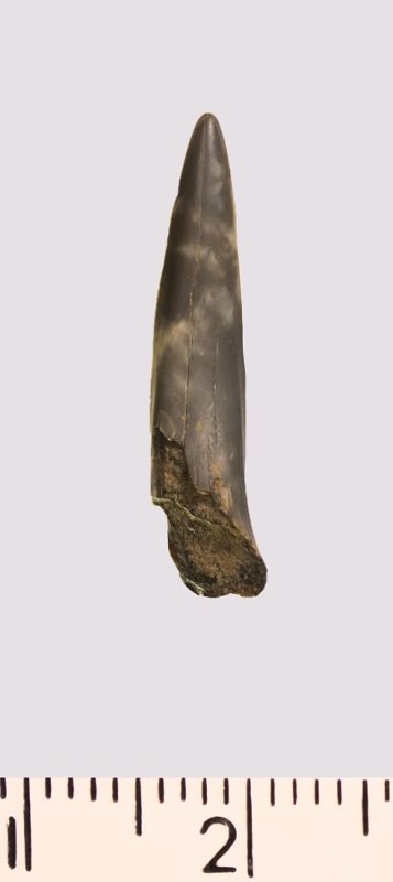 Зуб (фрагмент). Акула. Scapanorhynchus gigas Woodward, 1889. Классификация: Хордовые Chordata, Позвоночные Vertebrata, Хрящевые рыбы Chondrichthyes, Пластиножаберные Elasmobranchii