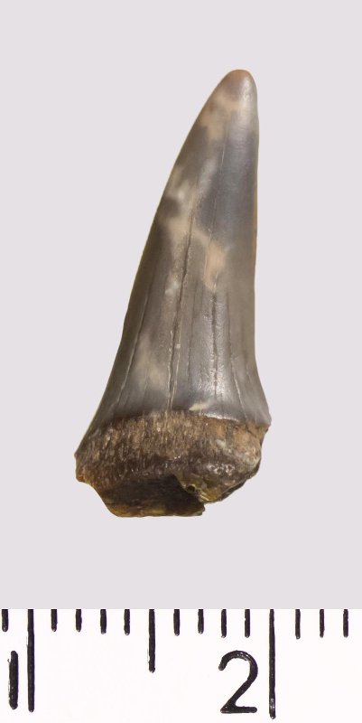 Зуб (фрагмент). Акула. Lamniformes gen. et sp. indet. Классификация: Хордовые Chordata, Позвоночные Vertebrata, Хрящевые рыбы Chondrichthyes, Пластиножаберные Elasmobranchii