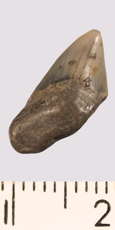 Зуб. Акула. Anacorax santonicus Glueckman et Zelezko,1980. Классификация: Хордовые Chordata, Позвоночные Vertebrata, Хрящевые рыбы Chondrichthyes, Пластиножаберные Elasmobranchii