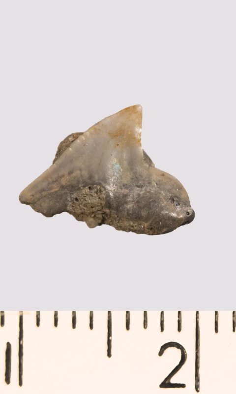 Зуб. Акула. Anacorax santonicus Glueckman et Zelezko,1980. Классификация: Хордовые Chordata, Позвоночные Vertebrata, Хрящевые рыбы Chondrichthyes, Пластиножаберные Elasmobranchii