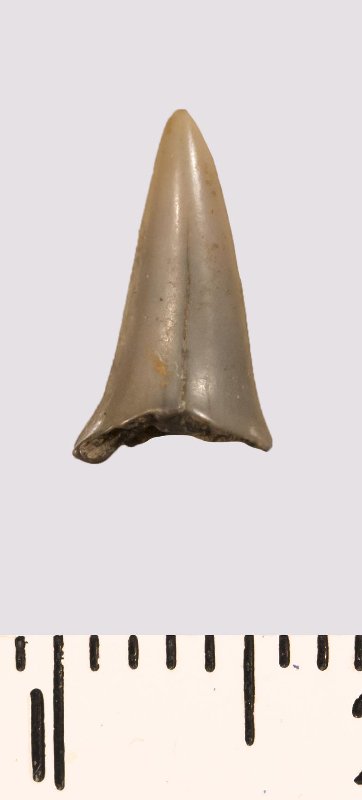 Зуб (фрагмент). Акула. Lamniformes gen. et sp. indet. Классификация: Хордовые Chordata, Позвоночные Vertebrata, Хрящевые рыбы Chondrichthyes, Пластиножаберные Elasmobranchii