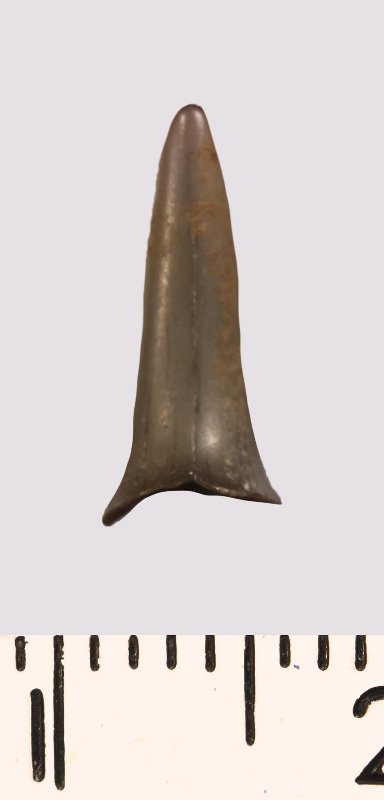 Зуб (фрагмент). Акула. Lamniformes gen. et sp. indet. Классификация: Хордовые Chordata, Позвоночные Vertebrata, Хрящевые рыбы Chondrichthyes, Пластиножаберные Elasmobranchii