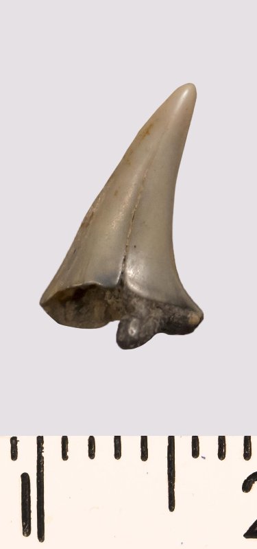 Зуб (фрагмент). Акула. Lamniformes gen. et sp. indet. Классификация: Хордовые Chordata, Позвоночные Vertebrata, Хрящевые рыбы Chondrichthyes, Пластиножаберные Elasmobranchii