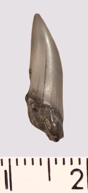 Зуб (фрагмент). Акула. Lamniformes gen. et sp. indet. Классификация: Хордовые Chordata, Позвоночные Vertebrata, Хрящевые рыбы Chondrichthyes, Пластиножаберные Elasmobranchii