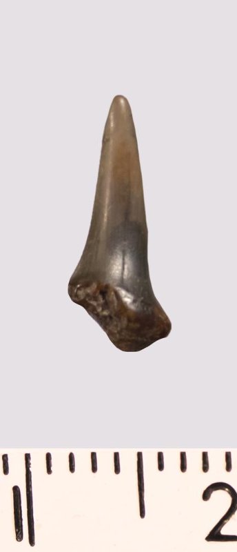Зуб (фрагмент). Акула. Lamniformes gen. et sp. indet. Классификация: Хордовые Chordata, Позвоночные Vertebrata, Хрящевые рыбы Chondrichthyes, Пластиножаберные Elasmobranchii
