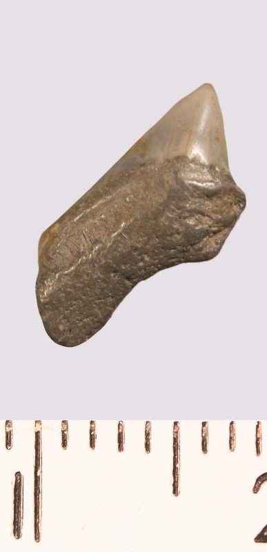 Зуб. Акула. Anacorax santonicus Glueckman et Zelezko,1980. Классификация: Хордовые Chordata, Позвоночные Vertebrata, Хрящевые рыбы Chondrichthyes, Пластиножаберные Elasmobranchii