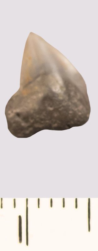 Зуб. Акула. Anacorax santonicus Glueckman et Zelezko,1980. Классификация: Хордовые Chordata, Позвоночные Vertebrata, Хрящевые рыбы Chondrichthyes, Пластиножаберные Elasmobranchii