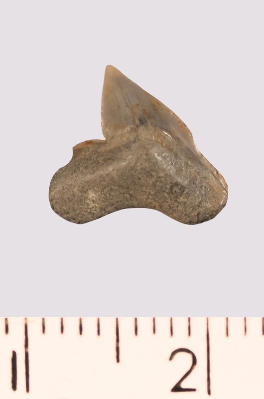 Зуб. Акула. Anacorax santonicus Glueckman et Zelezko,1980. Классификация: Хордовые Chordata, Позвоночные Vertebrata, Хрящевые рыбы Chondrichthyes, Пластиножаберные Elasmobranchii