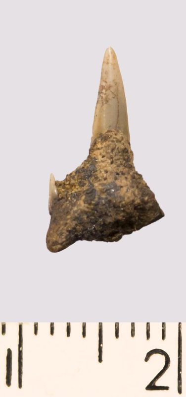 Зуб. Акула. Odontaspis venusta (Leriche, 1929). Классификация: Хордовые Chordata, Позвоночные Vertebrata, Хрящевые рыбы Chondrichthyes, Пластиножаберные Elasmobranchii