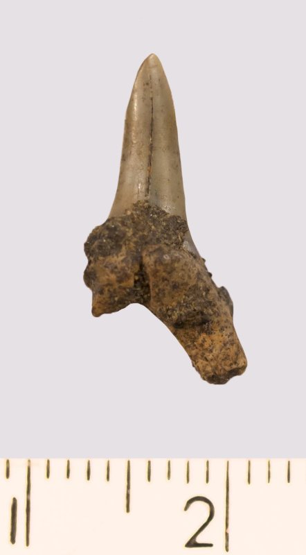 Зуб. Акула. Odontaspis venusta (Leriche, 1929). Классификация: Хордовые Chordata, Позвоночные Vertebrata, Хрящевые рыбы Chondrichthyes, Пластиножаберные Elasmobranchii