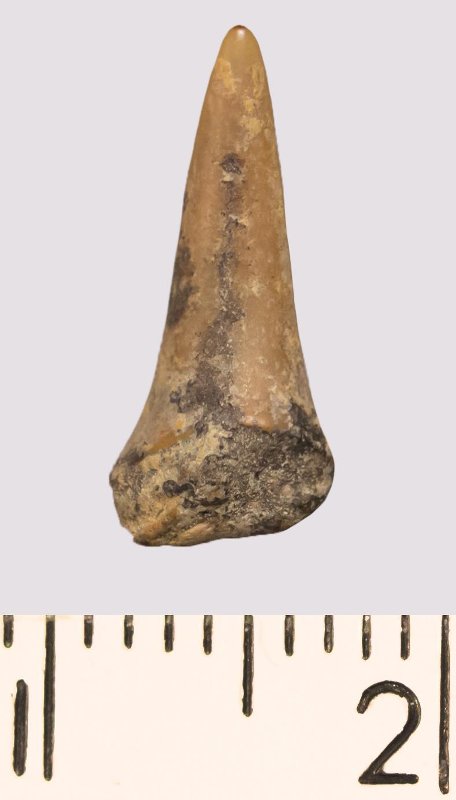 Зуб (фрагмент). Акула. Lamniformes gen. et sp. indet. Классификация: Хордовые Chordata, Позвоночные Vertebrata, Хрящевые рыбы Chondrichthyes, Пластиножаберные Elasmobranchii