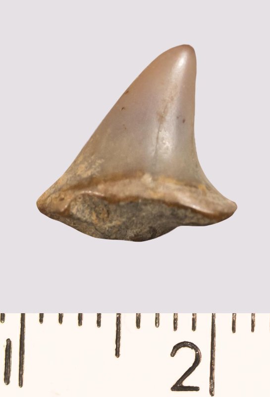Зуб (фрагмент). Акула. Lamniformes gen. et sp. indet. Классификация: Хордовые Chordata, Позвоночные Vertebrata, Хрящевые рыбы Chondrichthyes, Пластиножаберные Elasmobranchii
