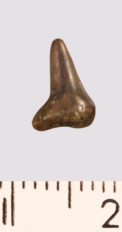 Зуб (фрагмент). Акула. Lamniformes gen. et sp. indet. Классификация: Хордовые Chordata, Позвоночные Vertebrata, Хрящевые рыбы Chondrichthyes, Пластиножаберные Elasmobranchii