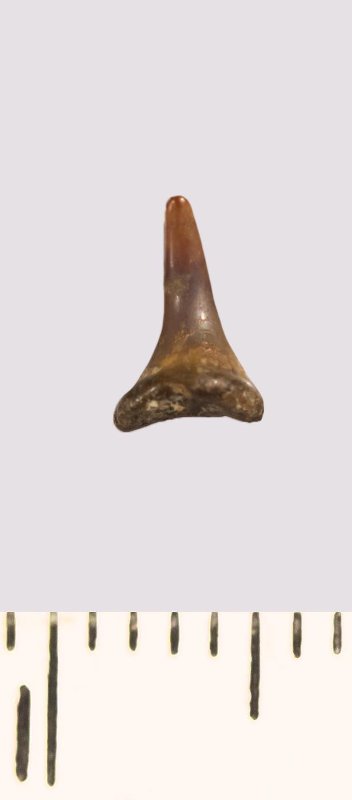Зуб (фрагмент). Акула. Eostriatolamia venusta Leriche, 1906. Классификация: Хордовые Chordata, Позвоночные Vertebrata, Хрящевые рыбы Chondrichthyes, Пластиножаберные Elasmobranchii
