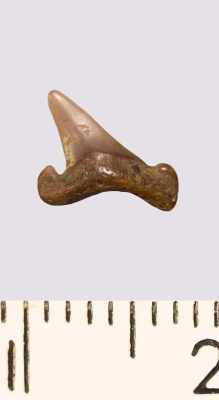 Зуб. Акула. Eostriatolamia subulata (Agassiz, 1843). Классификация: Хордовые Chordata, Позвоночные Vertebrata, Хрящевые рыбы Chondrichthyes, Пластиножаберные Elasmobranchii