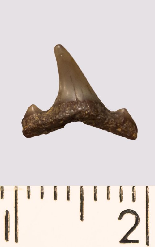 Зуб. Акула. Eostriatolamia subulata (Agassiz, 1843). Классификация: Хордовые Chordata, Позвоночные Vertebrata, Хрящевые рыбы Chondrichthyes, Пластиножаберные Elasmobranchii