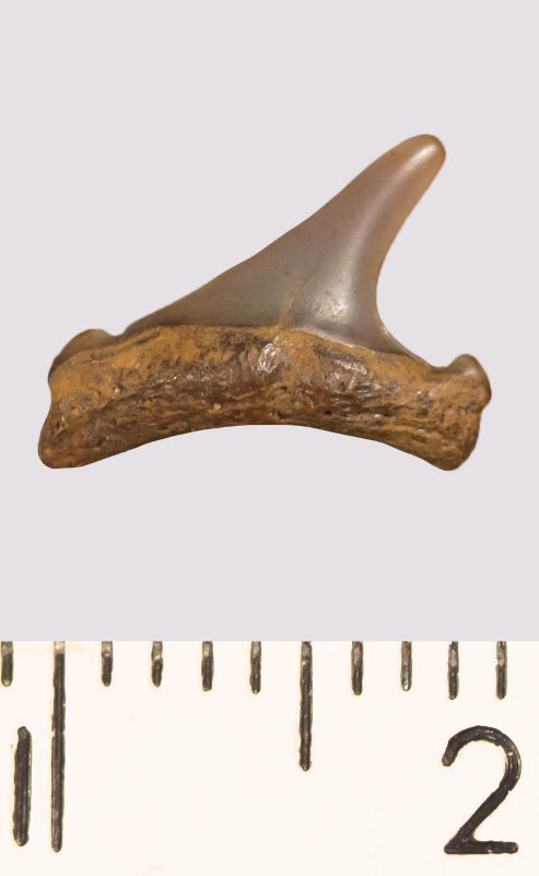 Зуб. Акула. Eostriatolamia subulata (Agassiz, 1843). Классификация: Хордовые Chordata, Позвоночные Vertebrata, Хрящевые рыбы Chondrichthyes, Пластиножаберные Elasmobranchii