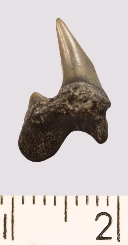 Зуб. Акула. Odontaspis macrorhiza (Cope) Leriche, 1902. Классификация: Хордовые Chordata, Позвоночные Vertebrata, Хрящевые рыбы Chondrichthyes, Пластиножаберные Elasmobranchii