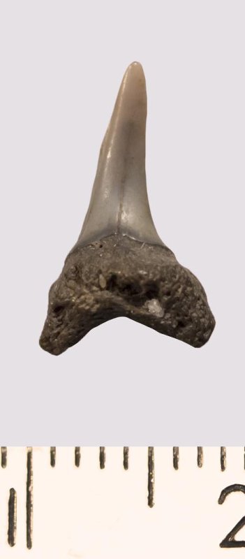 Зуб. Акула. Odontaspis macrorhiza (Cope) Leriche, 1902. Классификация: Хордовые Chordata, Позвоночные Vertebrata, Хрящевые рыбы Chondrichthyes, Пластиножаберные Elasmobranchii