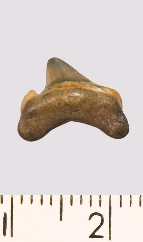 Зуб. Акула. Odontaspis macrorhiza (Cope) Leriche, 1902. Классификация: Хордовые Chordata, Позвоночные Vertebrata, Хрящевые рыбы Chondrichthyes, Пластиножаберные Elasmobranchii