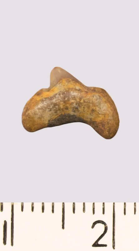 Зуб. Акула. Odontaspis macrorhiza (Cope) Leriche, 1902. Классификация: Хордовые Chordata, Позвоночные Vertebrata, Хрящевые рыбы Chondrichthyes, Пластиножаберные Elasmobranchii