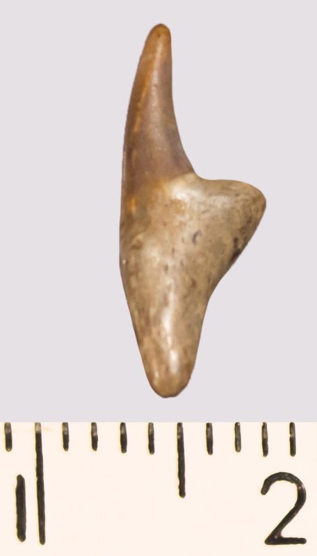 Зуб. Акула. Pseudoscapanorhynchidae gen. et sp. indet. Классификация: Хордовые Chordata, Позвоночные Vertebrata, Хрящевые рыбы Chondrichthyes, Пластиножаберные Elasmobranchii