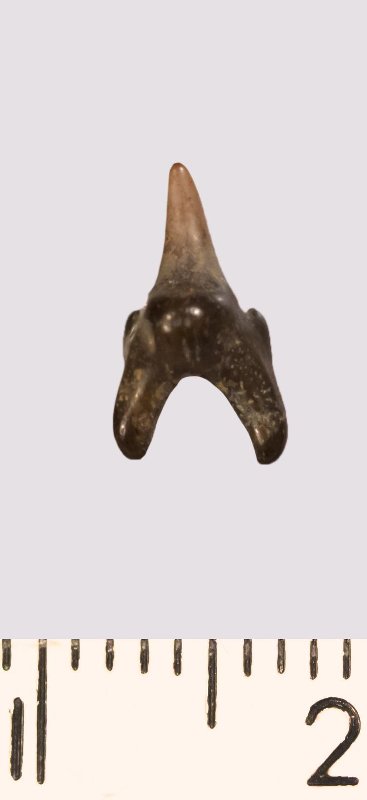 Зуб. Акула. Pseudoscapanorhynchidae gen. et sp. indet. Классификация: Хордовые Chordata, Позвоночные Vertebrata, Хрящевые рыбы Chondrichthyes, Пластиножаберные Elasmobranchii